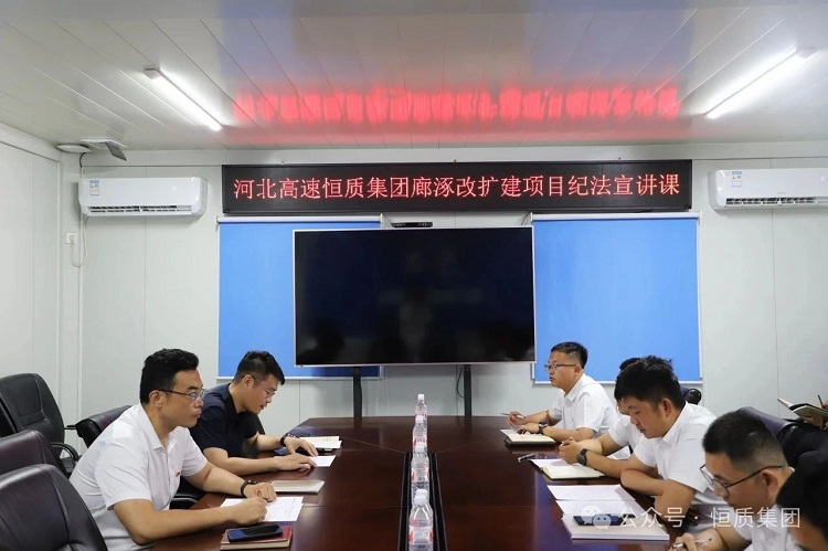 6月4日,为深入贯彻落实党的作风建设要求,强化项目廉政建设,恒质集团廊涿高速改扩建项目部组织开展纪法宣讲课活动,建管处纪检书记李磊出席并对廉政建设相关工作提出要